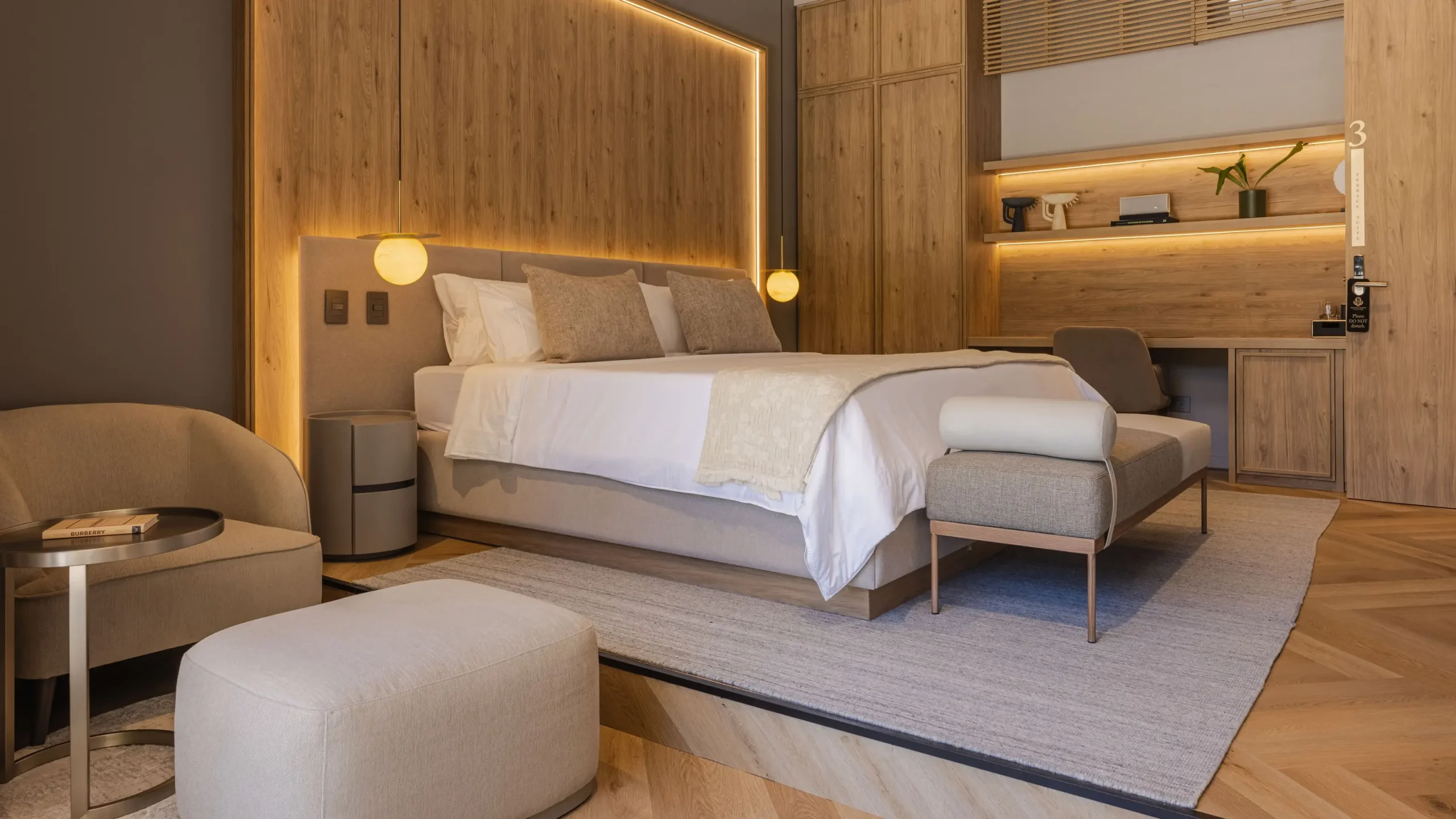 The Terrace Suite stands out for its spaciousness, comfort, and privileged views. Designed for those who value tranquility and elegance, it offers a modern space that perfectly balances style and comfort.